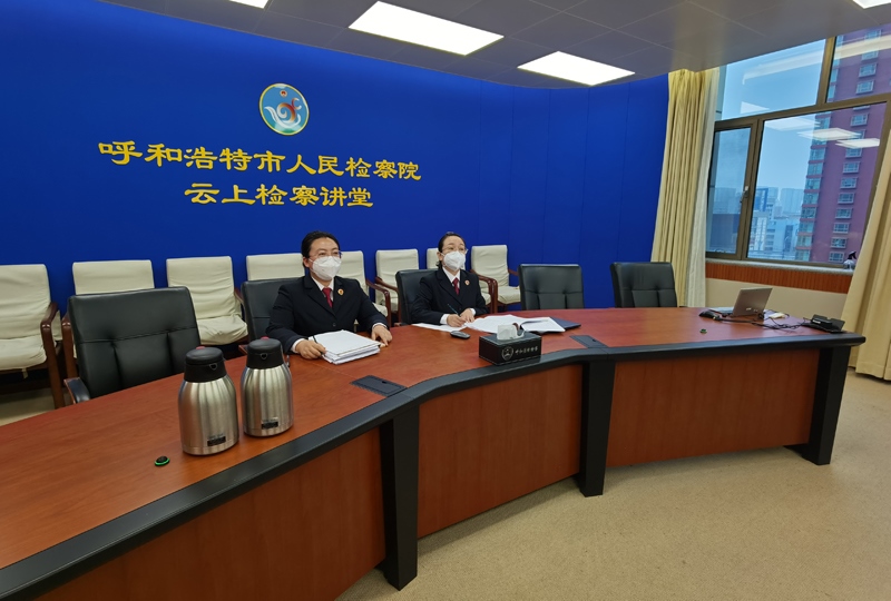 圖④11月18日,呼和浩特市檢察院干警線上參加全區(qū)民事檢察工作調度會。