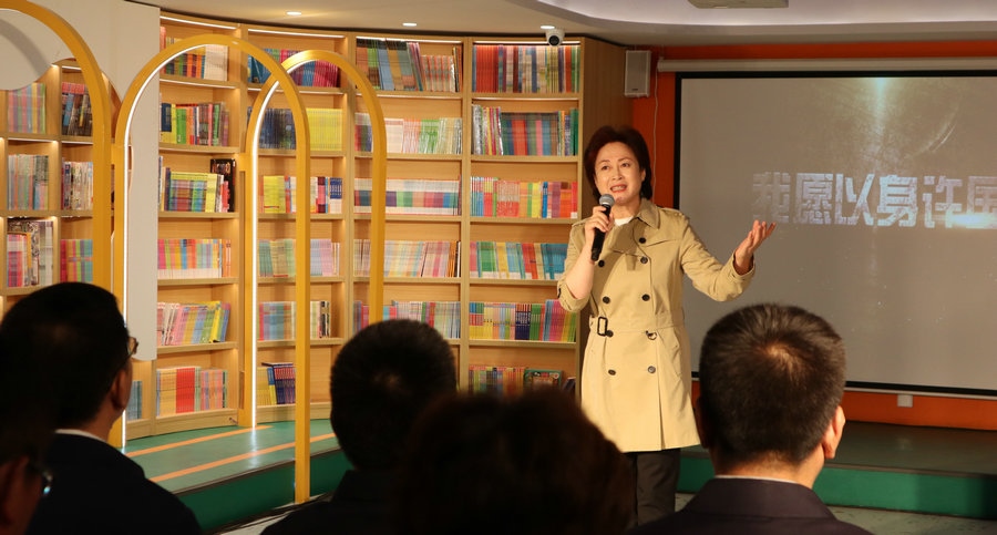 活動現(xiàn)場,大型交響詩畫《我愿以身許國》劇組的各位朗誦家們,深情演繹了大型交響詩畫《我愿以身許國》片段,并代表內(nèi)蒙古出版集團為呼和浩特市賽罕區(qū)四千米社區(qū)捐贈圖書。