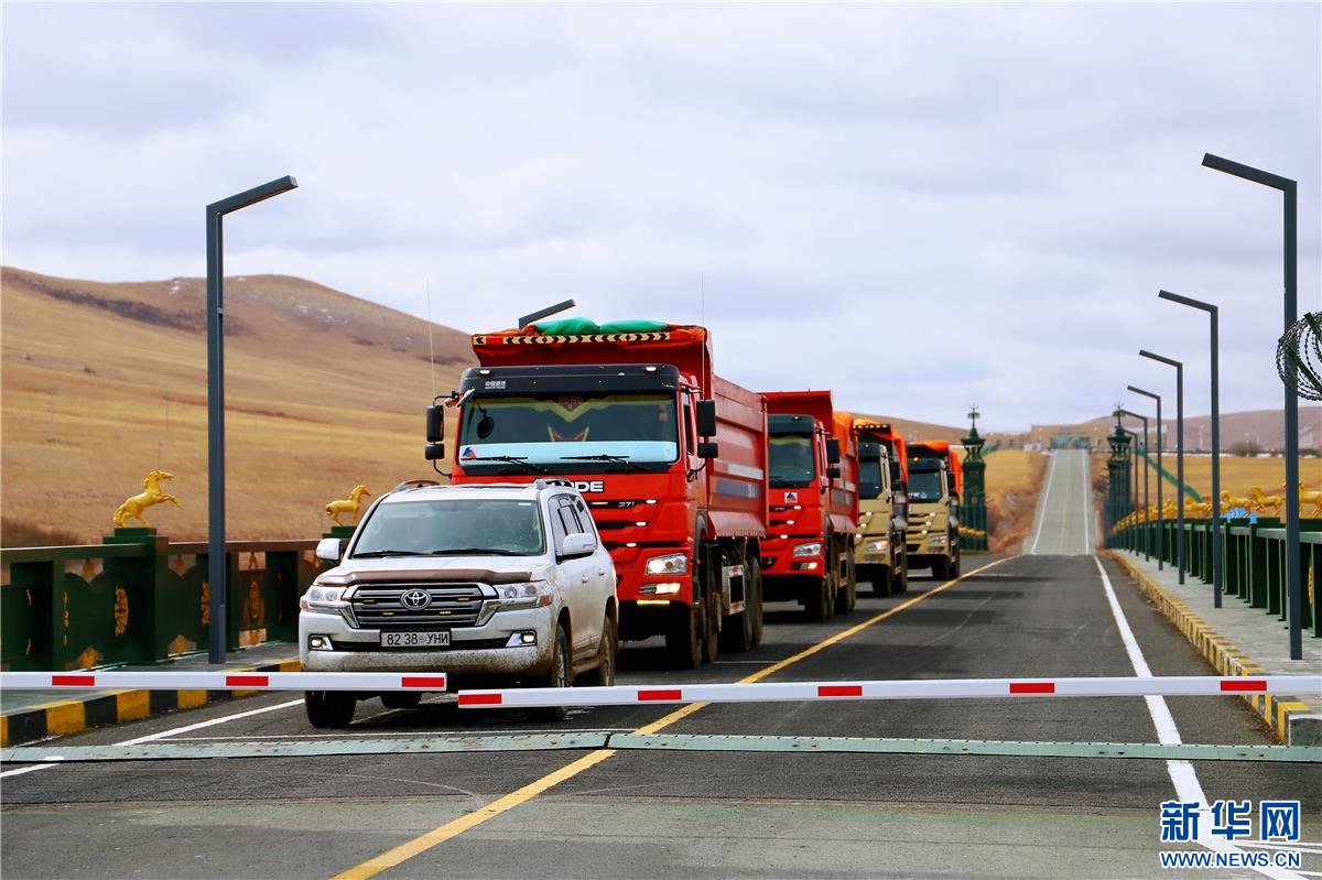 大卡車駛過(guò)珠恩嘎達(dá)布其口岸。資料圖 ??
