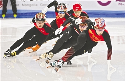 2月17日,吉林隊選手孫龍(右)在短道速滑公開組男子500米決賽中領(lǐng)滑。當日,在“十四冬”短道速滑公開組500米比賽中,吉林隊選手孫龍、張楚桐將男子、女子500米項目兩枚金牌收入囊中。草原全媒·正北方網(wǎng)記者 孟和朝魯 攝
