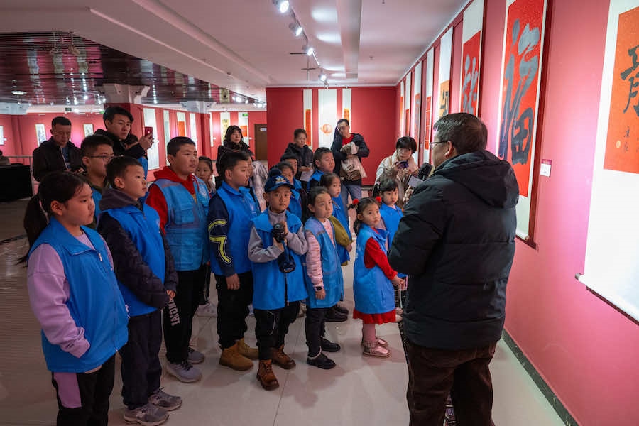 活動現(xiàn)場,20余名小朋友在家長的陪同下,參觀了“藝美北疆 遇見青城”——呼和浩特市百福迎春賀歲作品展”和“藝美北疆 新春納福”——池上墨苔 水墨集中國書畫名家邀請展,小朋友在呼和浩特美術(shù)館老師的講解下,了解了春節(jié)貼“福”字是我國民間由來已久的風(fēng)俗,“福”文化更是中華優(yōu)秀傳統(tǒng)文化的組成部分,激發(fā)了小朋友們對傳統(tǒng)文化的熱愛。