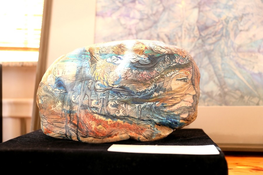 自2016年起,魯婷開始用黃河石畫的形式,講述母親河的故事。2018年,魯婷在西行客棧建立了自己的工作室,向社會各界免費(fèi)開放,用黃河石彩繪的方式,為北疆文化注入新的思想和內(nèi)涵。