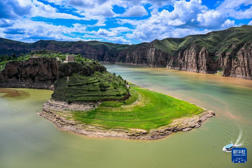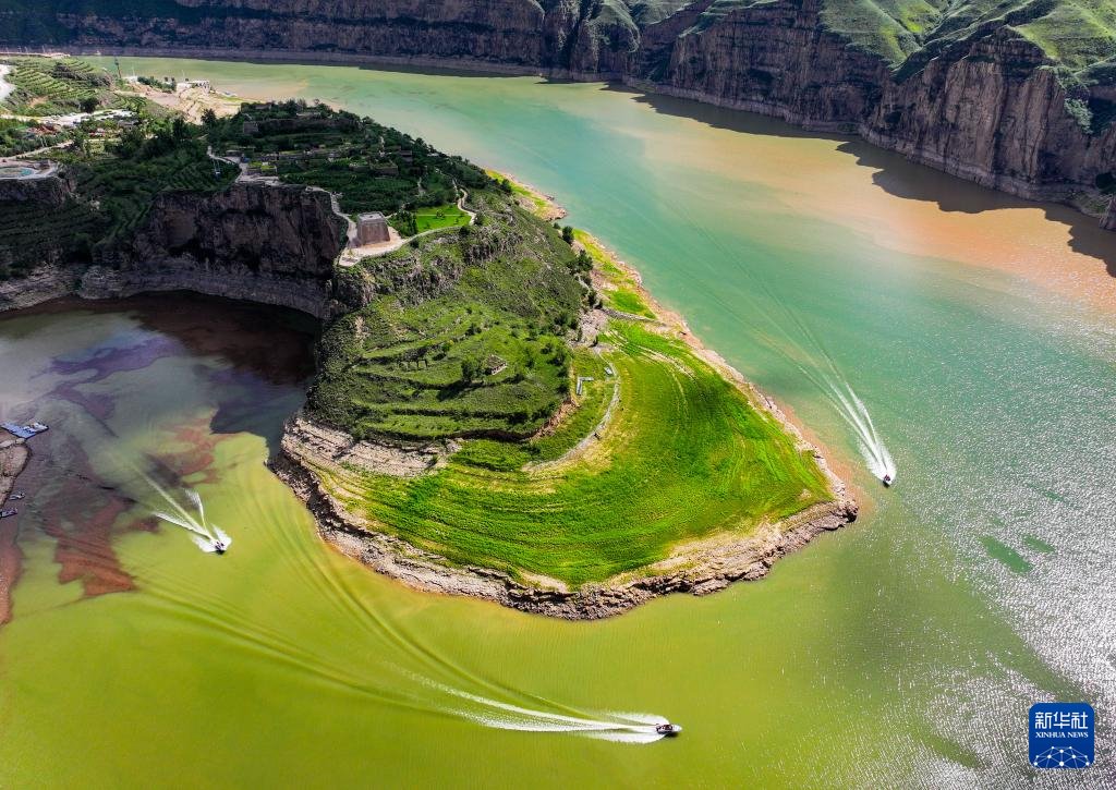 ??這是8月12日拍攝的黃河老牛灣風(fēng)光(無人機照片)。