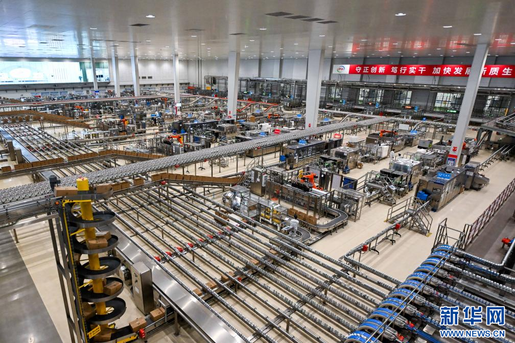 這是1月9日拍攝的呼和浩特市伊利現(xiàn)代智慧健康谷液態(tài)奶全球智造標(biāo)桿基地生產(chǎn)車(chē)間。