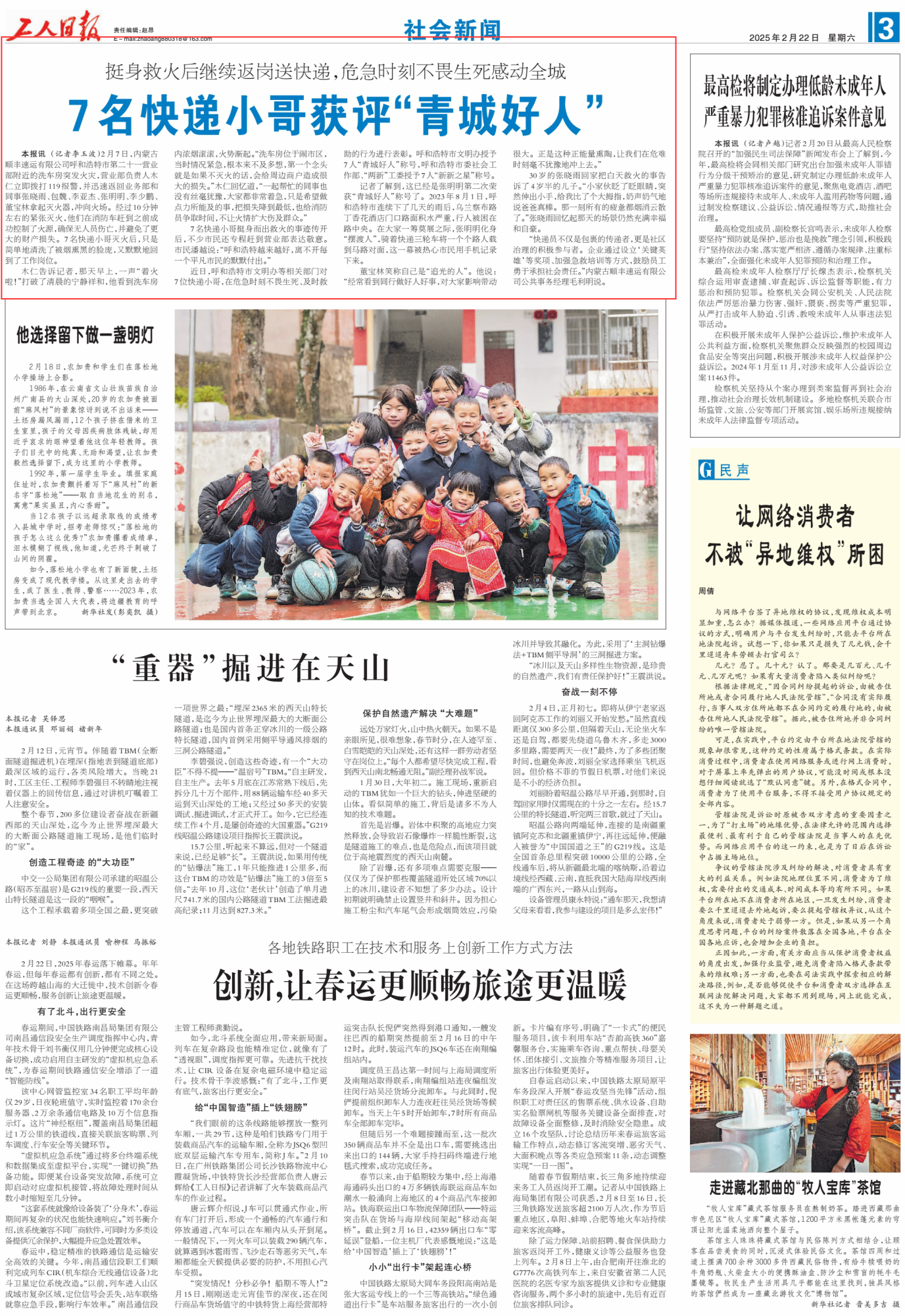 2025年2月22日,《工人日報》第3版刊發(fā)題為《挺身救火后繼續(xù)返崗送快遞,危急時刻不畏生死感動全城 7名快遞小哥獲評“青城好人”》的文章,報道了內(nèi)蒙古自治區(qū)呼和浩特市7位快遞小哥挺身救火,在消防車趕到之前成功控制了火源,確保無人員傷亡,并避免了更大的財(cái)產(chǎn)損失。