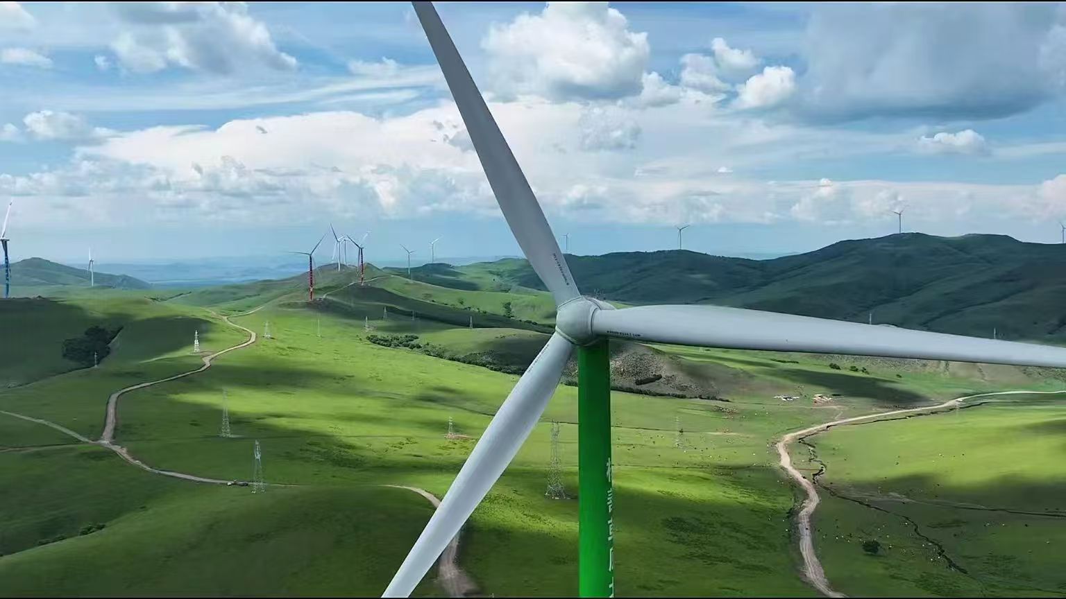 圖為中廣核興安盟300萬千瓦風(fēng)電項目場區(qū),目前該項目已經(jīng)全容量并網(wǎng)。