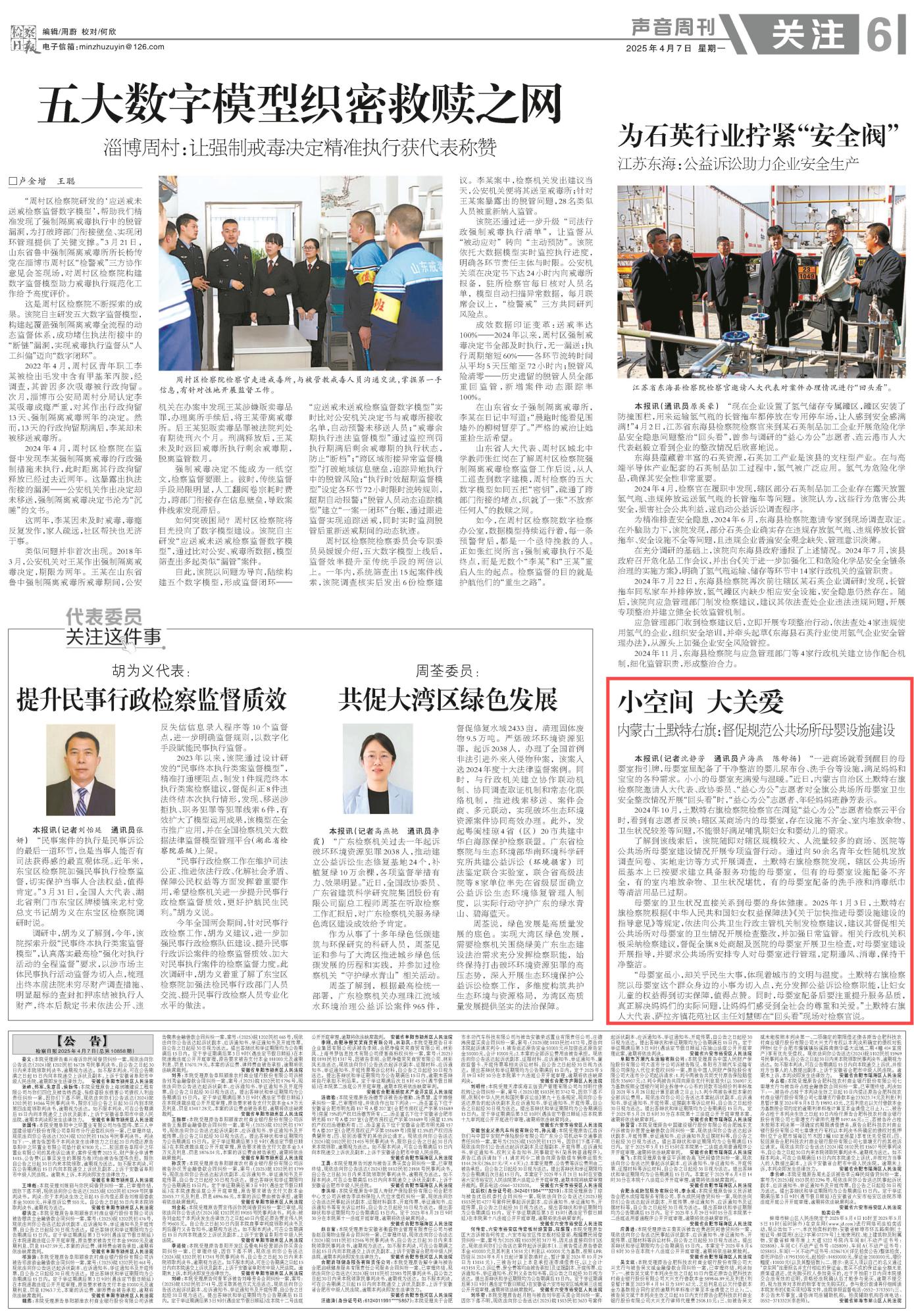 2025年4月7日,《檢察日報(bào)》第6版刊發(fā)題為《內(nèi)蒙古土默特右旗:督促規(guī)范公共場所母嬰設(shè)施建設(shè)》的文章,報(bào)道了內(nèi)蒙古自治區(qū)土默特右旗檢察院以母嬰室這個(gè)群眾身邊的小事為切入點(diǎn),充分發(fā)揮公益訴訟檢察職能,讓婦女兒童的權(quán)益得到切實(shí)保障,讓媽媽們感受到全社會(huì)的尊重和關(guān)愛。