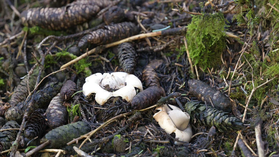 山間清風(fēng)裹挾著草木與泥土的濕潤(rùn)氣息撲面而來(lái),腳下的步道旁,松塔與翠綠的雜草間,不時(shí)冒出一朵朵野生蘑菇,宛如散落在林間的“小傘”,為靜謐的山野增添了幾分靈動(dòng)。