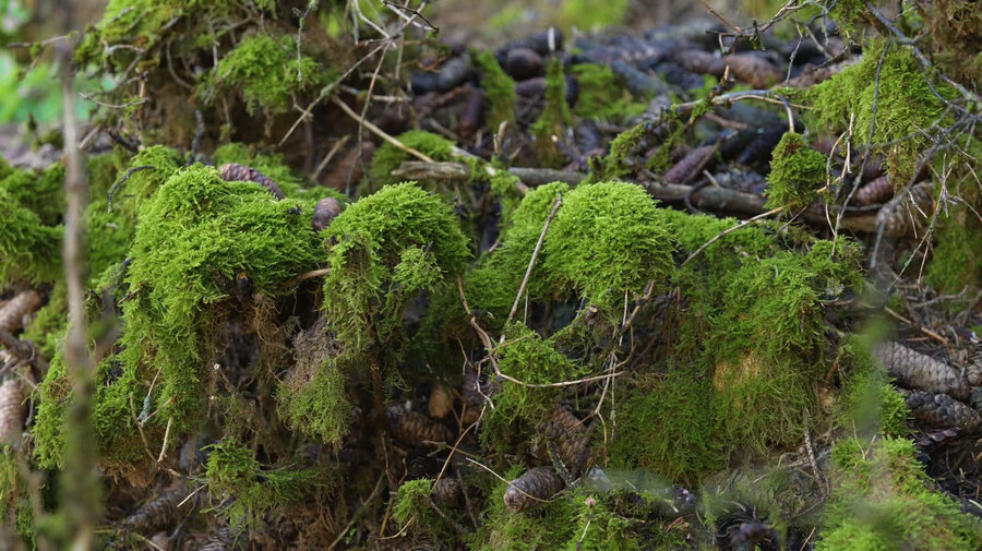 枯木上覆蓋著厚厚的綠色苔蘚