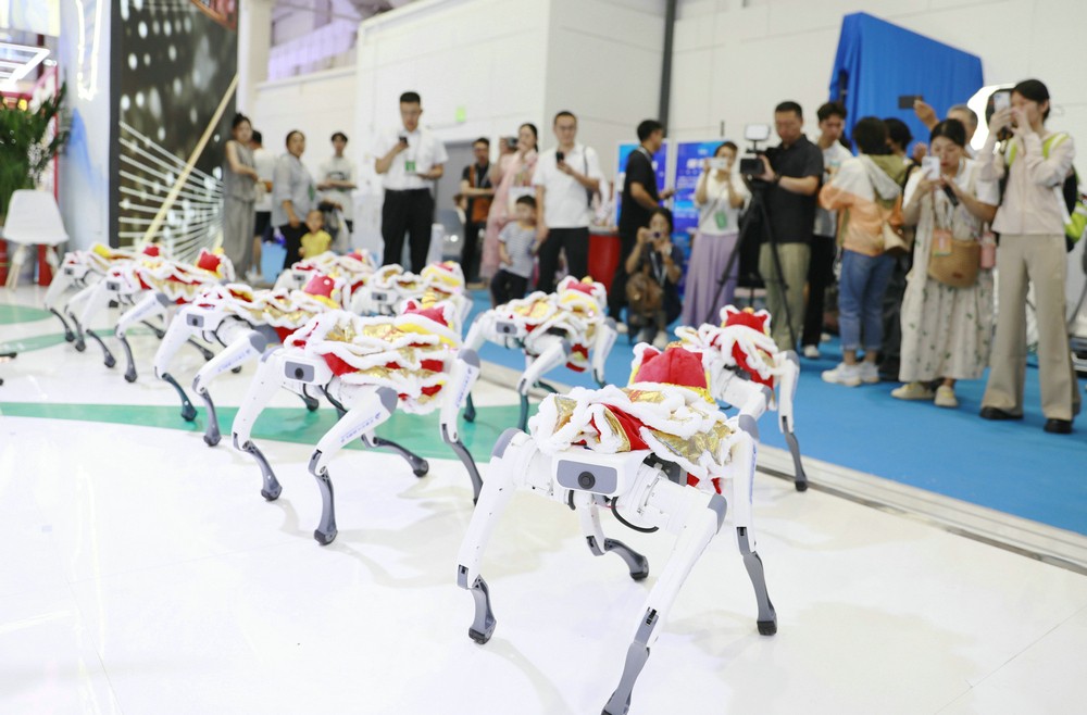呼和浩特展區(qū)機(jī)器狗伴著愛樂樂團(tuán)的演奏翩翩起舞