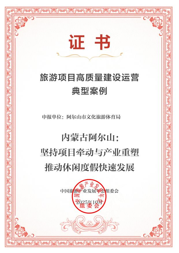 阿爾山市“堅(jiān)持項(xiàng)目牽動(dòng)與產(chǎn)業(yè)重塑推動(dòng)休閑度假快速發(fā)展”案例成功入選2025旅游項(xiàng)目高質(zhì)量建設(shè)運(yùn)營典型案例。