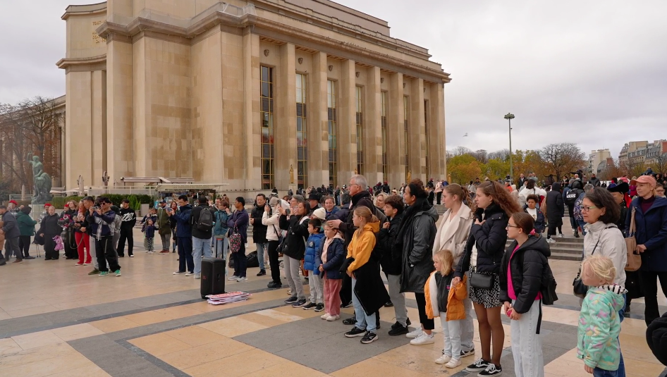 在法國(guó)巴黎市的夏約宮廣場(chǎng)、埃菲爾鐵塔、香榭麗舍大街、巴黎圣母院、凱旋門、國(guó)際大學(xué)城,比利時(shí)布魯塞爾市大廣場(chǎng)、藝術(shù)山等地,阿拉善的烏蘭牧騎演員開啟了一場(chǎng)場(chǎng)融合蒙古族華服走秀與快閃歌舞表演,“阿拉善在哪里?”“這服裝太酷了!”“怎么有萬(wàn)馬奔騰的感覺!”“想去看一看!”“這沙漠也太壯觀了!”快閃路演吸引了法國(guó)、比利時(shí)以及來(lái)自世界各地的游客駐足觀看,喝彩不斷,沉醉其中。