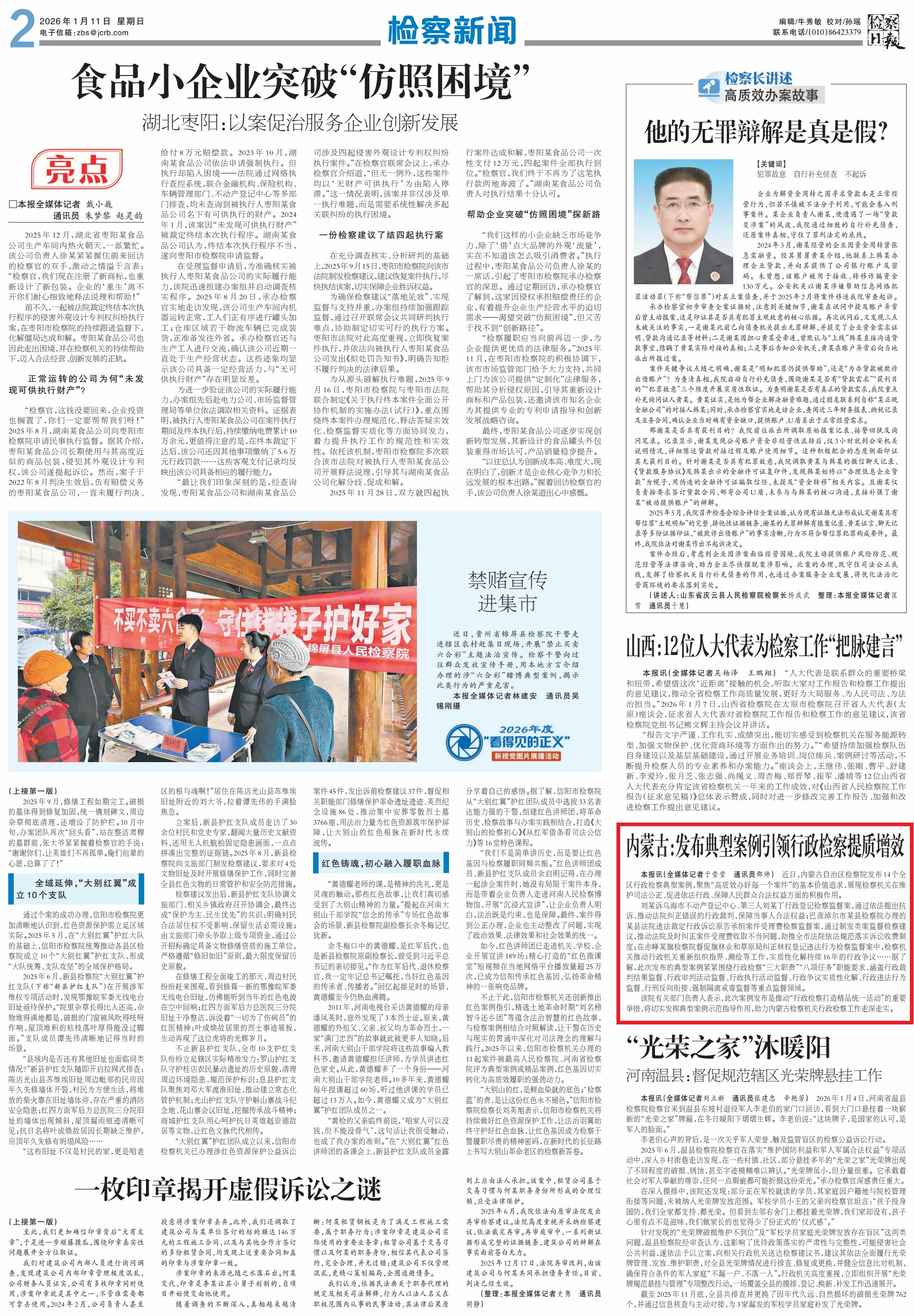 2026年1月11日,《檢察日報(bào)》第2版刊發(fā)題為《內(nèi)蒙古:發(fā)布典型案例引領(lǐng)行政檢察提質(zhì)增效》的文章,報(bào)道了內(nèi)蒙古自治區(qū)檢察院發(fā)布14個(gè)行政檢察典型案例,聚焦“高質(zhì)效辦好每一個(gè)案件”價(jià)值追求,圍繞行政檢察“三大職責(zé)”“八項(xiàng)任務(wù)”,覆蓋行政裁判監(jiān)督、爭議實(shí)質(zhì)性化解、行刑反向銜接等重點(diǎn)領(lǐng)域。
