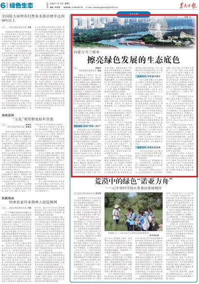 2026年1月13日,《農(nóng)民日?qǐng)?bào)》2版刊發(fā)題為《內(nèi)蒙古烏蘭察布擦亮綠色發(fā)展的生態(tài)底色》的文章,報(bào)道了烏蘭察布多年來(lái)深入貫徹習(xí)近平生態(tài)文明思想,錨定“筑牢我國(guó)北方重要生態(tài)安全屏障”目標(biāo),深耕生態(tài)治理與綠色發(fā)展的成果。如今,這座北疆城市以愈發(fā)鮮亮的生態(tài)底色,讓群眾的獲得感、幸福感在綠水青山間不斷升騰。