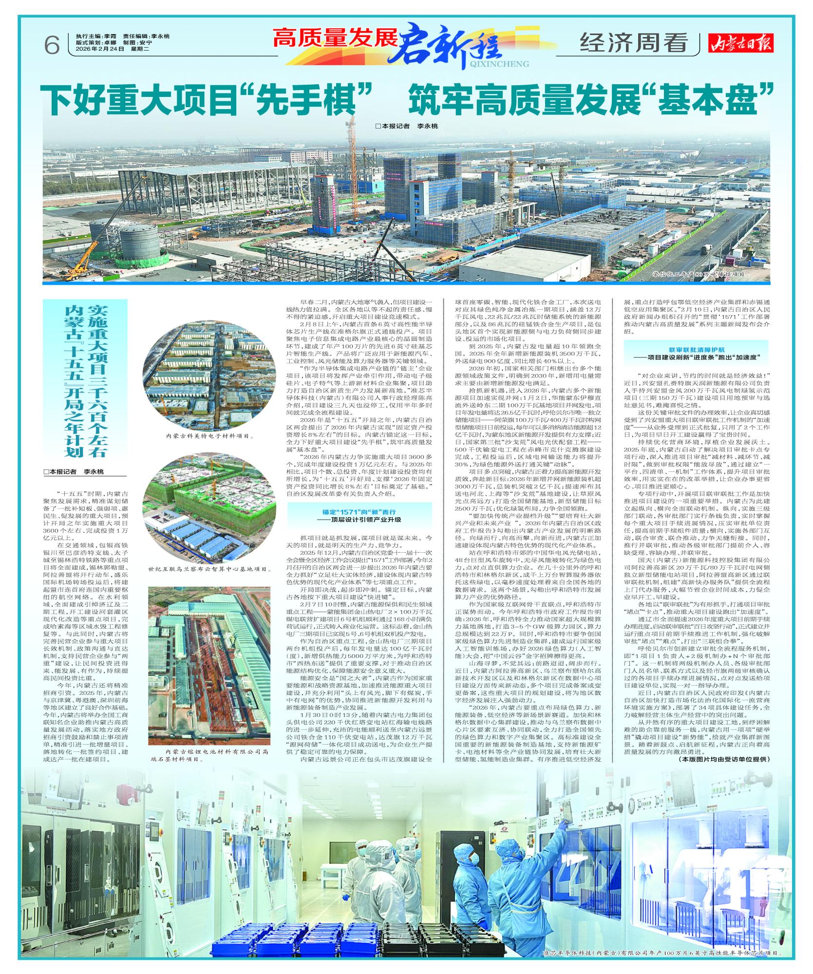 2026年是“十五五”開局之年,內(nèi)蒙古自治區(qū)兩會提出了2026年內(nèi)蒙古實現(xiàn)“固定資產(chǎn)投資增長8%左右”的目標(biāo)。內(nèi)蒙古錨定這一目標(biāo),全力下好重大項目建設(shè)“先手棋”,筑牢高質(zhì)量發(fā)展“基本盤”。