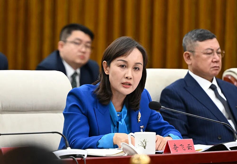 奇飛云代表回答中央廣播電視總臺記者提問。