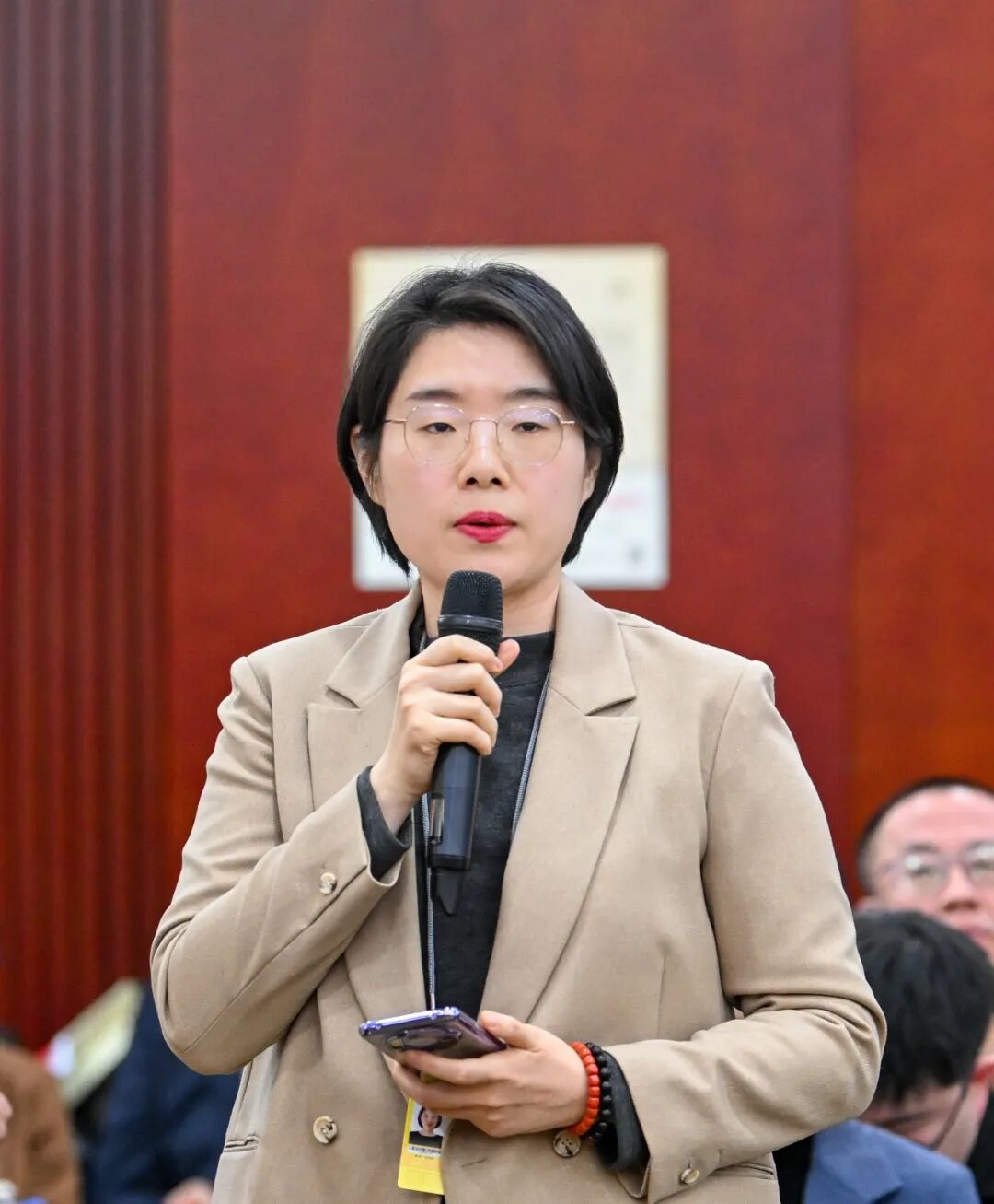 內(nèi)蒙古代表團(tuán)開放團(tuán)組活動現(xiàn)場,記者們架起“長槍短炮”,現(xiàn)場快門聲此起彼伏。
