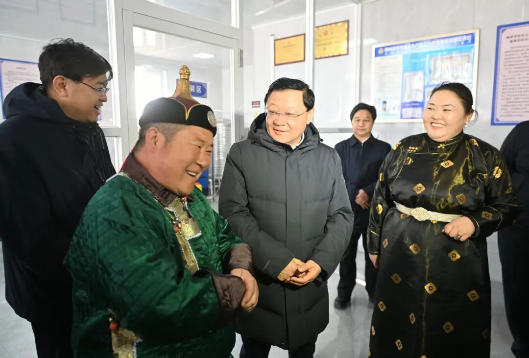3月23日,自治區(qū)黨委書記、人大常委會主任王偉中在阿巴嘎旗伊克塞畜牧服務(wù)有限公司調(diào)研獸醫(yī)機構(gòu)社會化服務(wù)情況。草原云·內(nèi)蒙古新聞網(wǎng)記者 馬建兵 攝