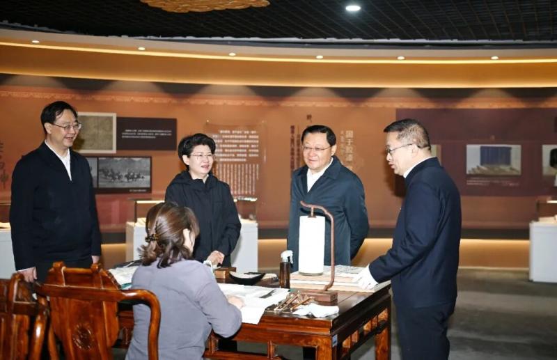4月20日,自治區(qū)黨委書記、人大常委會(huì)主任王偉中走進(jìn)內(nèi)蒙古圖書館,詳細(xì)察看鑄牢中華民族共同體意識館藏古籍展覽情況。草原云·內(nèi)蒙古新聞網(wǎng)記者 馬建兵 攝