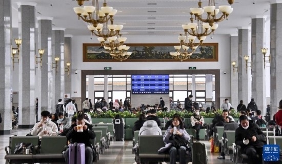 北京火車站在保持歷史原貌的前提下對候車大廳的裝飾、燈光等進(jìn)行了升級改造(2023年2月17日攝)。