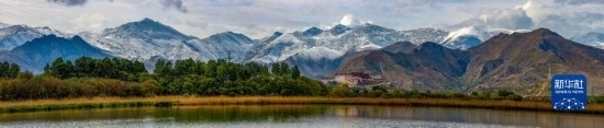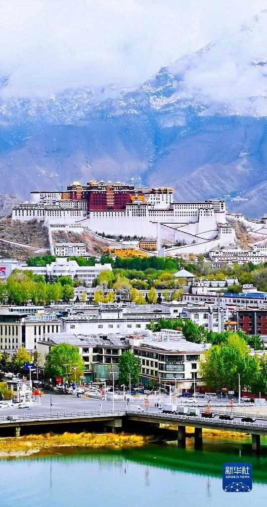 這是在拉魯濕地拍攝的拉薩風(fēng)光,蔥蘢的樹木點綴在城市中,與山色相映成趣(5月12日攝)。