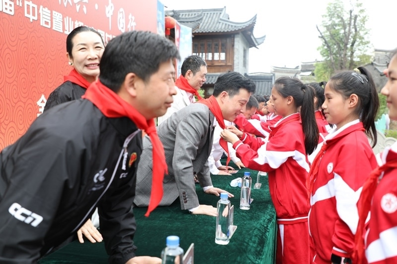 學生為嘉賓佩戴紅領巾。人民網(wǎng)記者 李乃妍攝