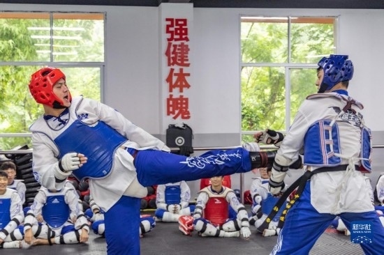 “安排一起訓(xùn)練的目的是讓他們和大家融入在一起,從而更好提升自己?!敝袊?guó)國(guó)家跆拳道隊(duì)退役運(yùn)動(dòng)員、訓(xùn)練基地總教練張銀余介紹。