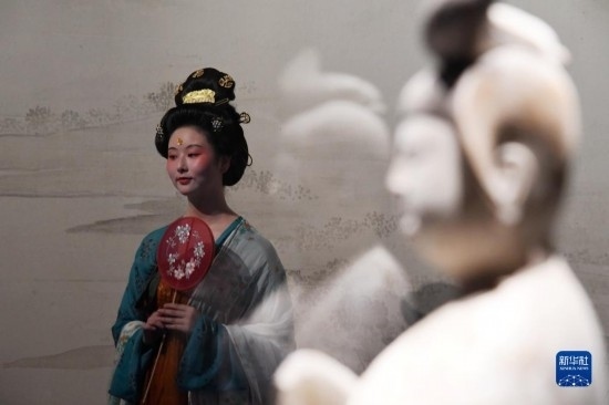 5月22日晚,在西安博物院《長(zhǎng)安有故里——絲路少年大唐行》展覽上,演員為游客呈現(xiàn)唐朝服飾。