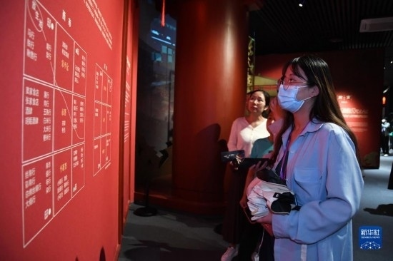 5月22日晚,游客在西安博物院《長(zhǎng)安有故里——絲路少年大唐行》展覽上參觀。
