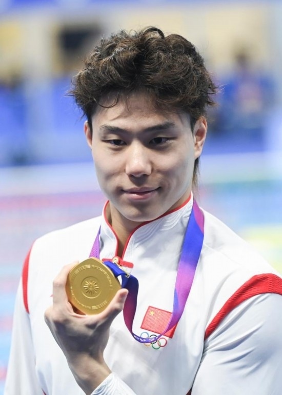 覃海洋在當(dāng)天上午的男子50米蛙泳預(yù)賽以26秒25打破賽會紀錄,決賽中雖然沒能再破紀錄,但26秒35的成績已經(jīng)足夠讓他收獲在本屆亞運會的第五金。另一名中國短距離蛙泳好手孫佳俊獲得銀牌,韓國選手崔東烈摘得銅牌。值得一提的是,覃海洋獲得的這枚金牌,是中國體育代表團在杭州亞運會上斬獲的第100枚金牌。