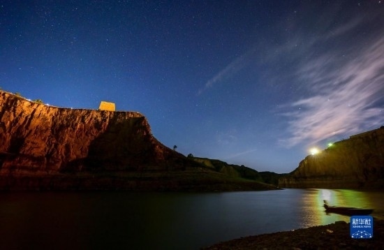 黃河老牛灣位于內(nèi)蒙古自治區(qū)和山西省交界處。夜空下,峽谷兩岸壁立千仞,黃河奔流不息,明長城依山而行,風(fēng)光壯美。