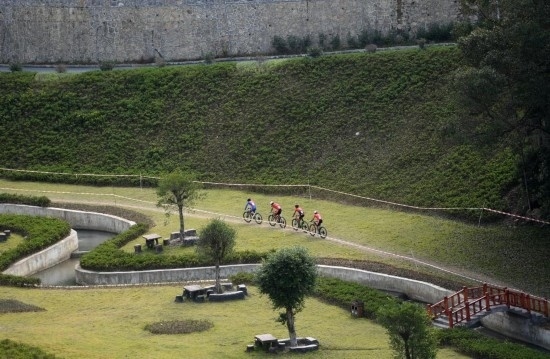 10月28日,參賽選手在比賽中。當(dāng)日,第一屆全國(guó)學(xué)生(青年)運(yùn)動(dòng)會(huì)男子山地自行車越野賽在廣西南丹縣舉行,貴陽(yáng)市代表隊(duì)選手王勝以1小時(shí)4分36秒奪得冠軍,遵義市代表隊(duì)選手文靈浩以1小時(shí)4分38秒獲得亞軍,成都市代表隊(duì)選手解道超以1小時(shí)5分12秒獲得季軍。新華社記者 陸波岸 攝