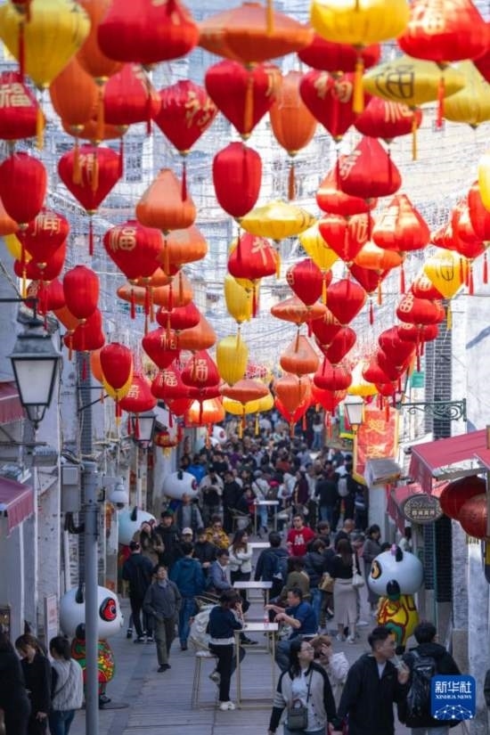 當日是農(nóng)歷正月初三,澳門大三巴牌坊、議事亭前地等多個旅游景點游人如織。