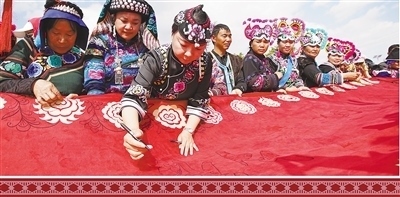 在楚雄彝族自治州,像李如秀、李濟雁這樣的繡娘,多達5.7萬名。這背后,離不開一代又一代繡娘的努力和創(chuàng)新,更離不開當?shù)攸h委政府的扶持。為了擴大“賽裝節(jié)”影響力,推動彝繡的發(fā)展,楚雄彝族自治州州委、州政府出臺了一系列政策:培養(yǎng)繡娘,提高刺繡技能;組建協(xié)會,搭建發(fā)展平臺。彝繡產(chǎn)業(yè)逐漸成為推進鄉(xiāng)村全面振興的重要產(chǎn)業(yè)。