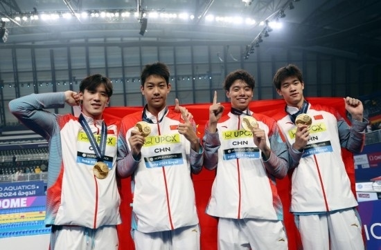 11日,中國(guó)農(nóng)歷甲辰龍年大年初二,多哈世界游泳錦標(biāo)賽游泳項(xiàng)目第一個(gè)比賽日,潘展樂和隊(duì)友季新杰、張展碩、王浩宇在男子4×100米自由泳接力決賽中以3分11秒08贏得金牌,為中國(guó)男子游泳創(chuàng)造歷史!中國(guó)游泳此前還從未獲得過世錦賽或者奧運(yùn)會(huì)的男子接力冠軍。