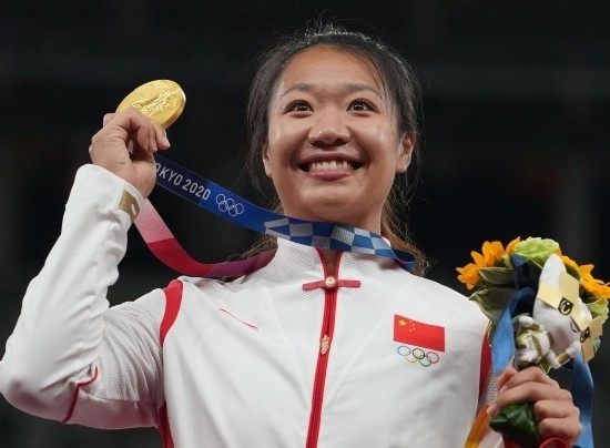 2021年8月7日,冠軍劉詩穎在東京奧運(yùn)會(huì)田徑項(xiàng)目女子標(biāo)槍頒獎(jiǎng)儀式上。新華社記者 呂小煒 攝