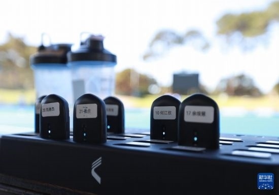 這是4月26日拍攝的中國女曲隊球員體能數(shù)據(jù)監(jiān)測器。新華社記者 馬平 攝