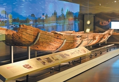 圖為陜西歷史博物館秦漢館展出的漢代古船“絲路一號(hào)”。新華社記者 李一博攝