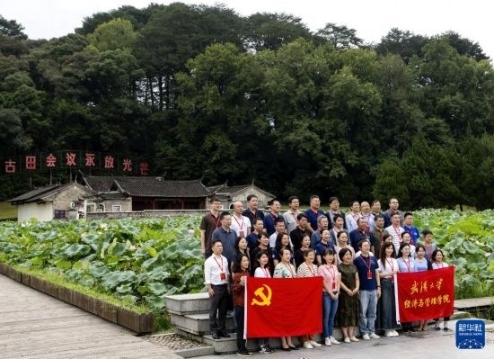 8月29日,來自武漢大學(xué)經(jīng)濟與管理學(xué)院的培訓(xùn)團隊在古田會議會址前合影。