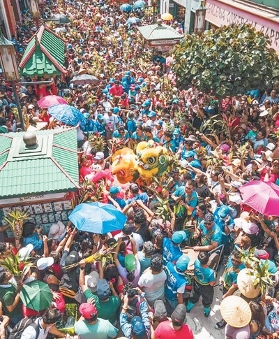 如今,舞龍舞獅已融入秘魯社會。每年中國春節(jié),醒獅團(tuán)都會在唐人街游行表演,喜慶的鑼鼓振奮人心,龍獅獻(xiàn)瑞帶來歡樂祥和。秘魯民眾走上街頭,手持他們稱為“中國竹子”的轉(zhuǎn)運(yùn)竹,簇?fù)碓邶埅{周圍,爭相看一看、摸一摸,希望沾上喜氣與幸運(yùn)——這已成為秘魯一大民俗。在秘魯人的婚禮上,舞獅已成為一種時(shí)尚。