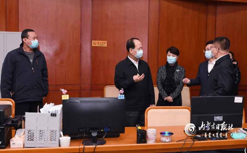 2月17日,自治區(qū)黨委書記、人大常委會主任石泰峰,自治區(qū)黨委副書記、自治區(qū)主席王莉霞來到呼和浩特市疫情防控指揮部調(diào)研督導(dǎo)疫情防控工作。內(nèi)蒙古日報社融媒體記者 袁永紅 攝