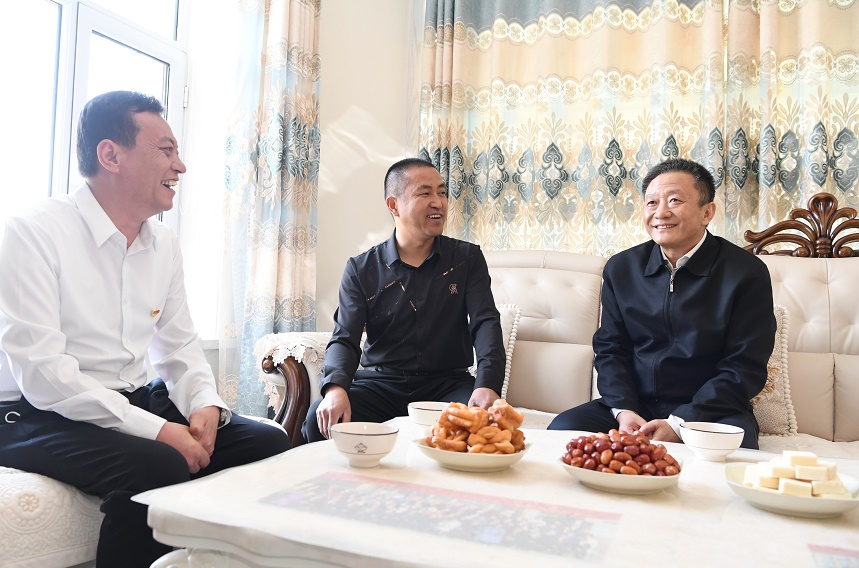 5月17日,自治區(qū)黨委書記孫紹騁走進額肯呼都格嘎查致富帶頭人徐兵賢家中,察看生活條件,與他們算起收支賬。內(nèi)蒙古日報社融媒體記者袁永紅攝
