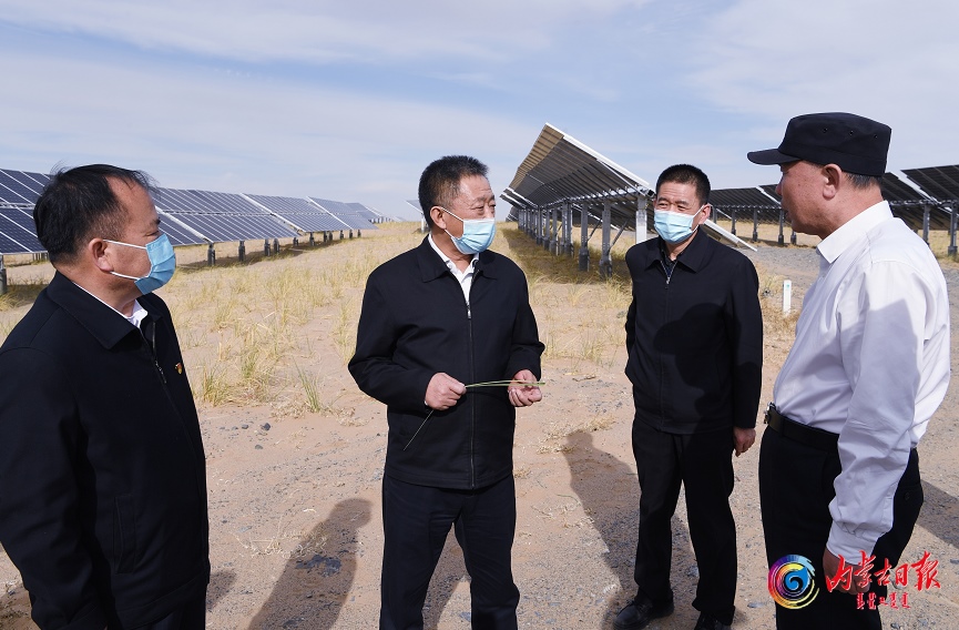 5月17日,自治區(qū)黨委書記孫紹騁考察阿拉善左旗內(nèi)蒙古巴音新能源有限公司新能源基地建設(shè)及光伏治沙情況。內(nèi)蒙古日報社融媒體記者袁永紅攝