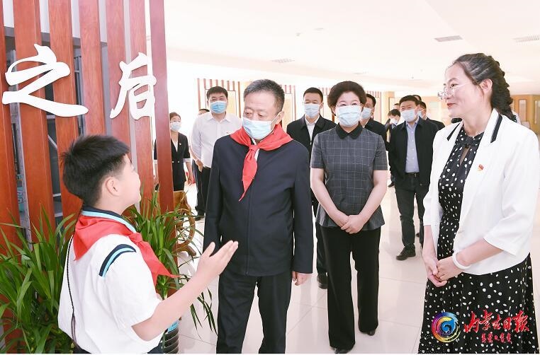 6月1日,自治區(qū)黨委書記孫紹騁來到鄂爾多斯市康巴什區(qū)第五小學(xué),觀看了學(xué)校組織的書法、美術(shù)和才藝展示等文體活動,并與小學(xué)生共同慶祝“六一”國際兒童節(jié)。記者袁永紅攝