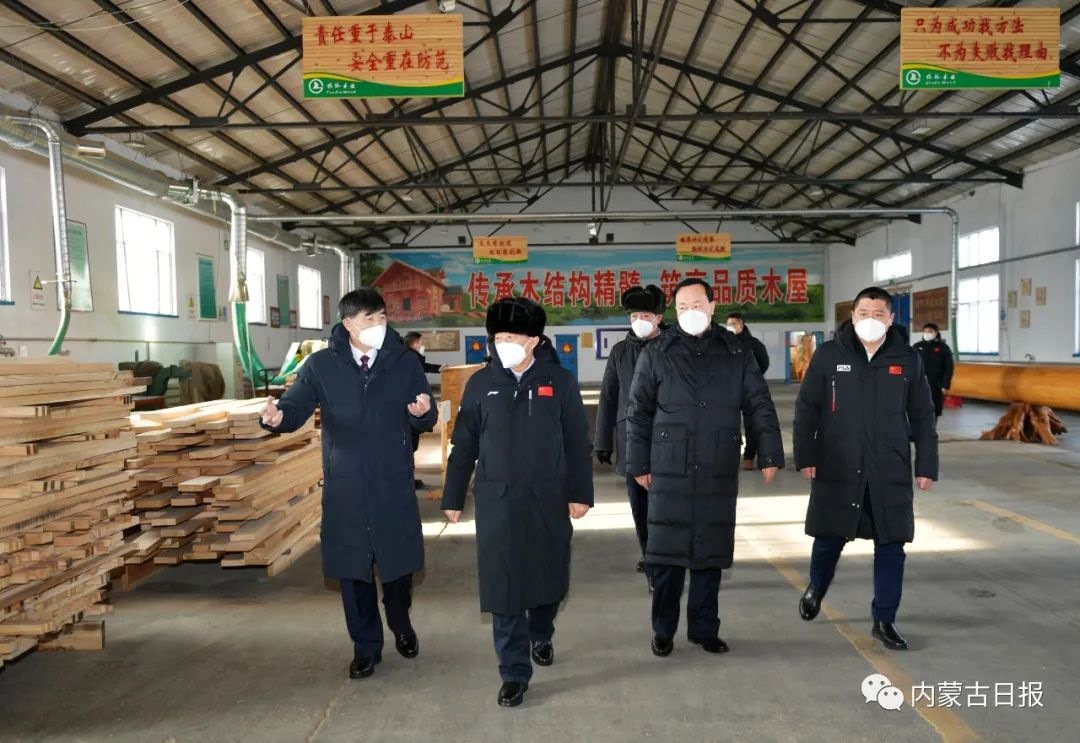 1月26日,自治區(qū)黨委書記、人大常委會(huì)主任孫紹騁來到呼倫貝爾根河市,在根林木業(yè)有限責(zé)任公司,調(diào)研改制企業(yè)發(fā)展情況。記者馬建荃攝
