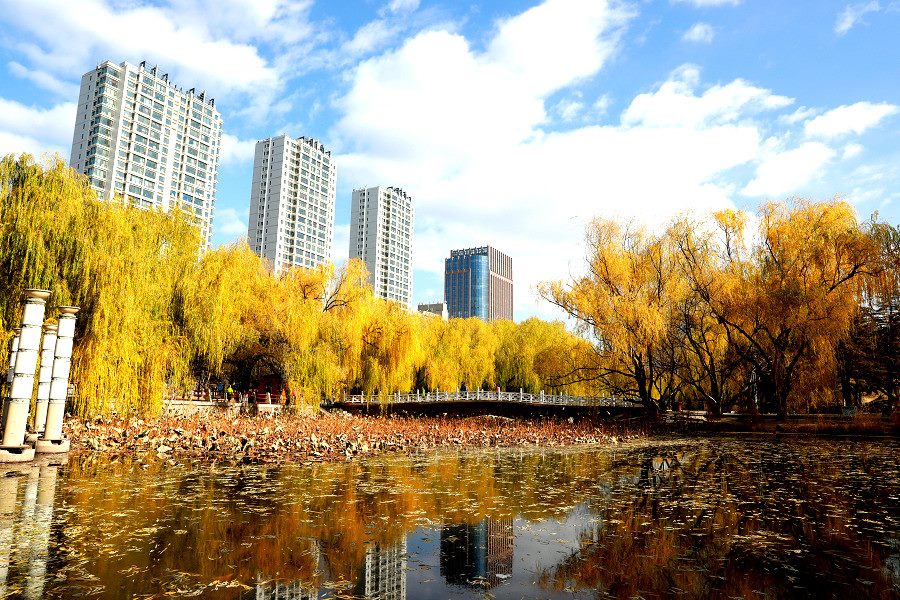 深秋時(shí)節(jié),位于呼和浩特市烏蘭察布西路南側(cè)的滿(mǎn)都海公園,秋色浸染,滿(mǎn)目金黃。