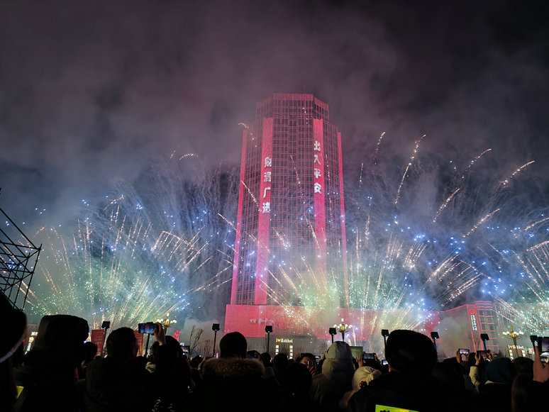 1月1日零時(shí),隨著新年鐘聲的敲響, 內(nèi)蒙古自治區(qū)呼和浩特市數(shù)萬(wàn)人在新華廣場(chǎng)倒數(shù),迎接2024年到來(lái)。